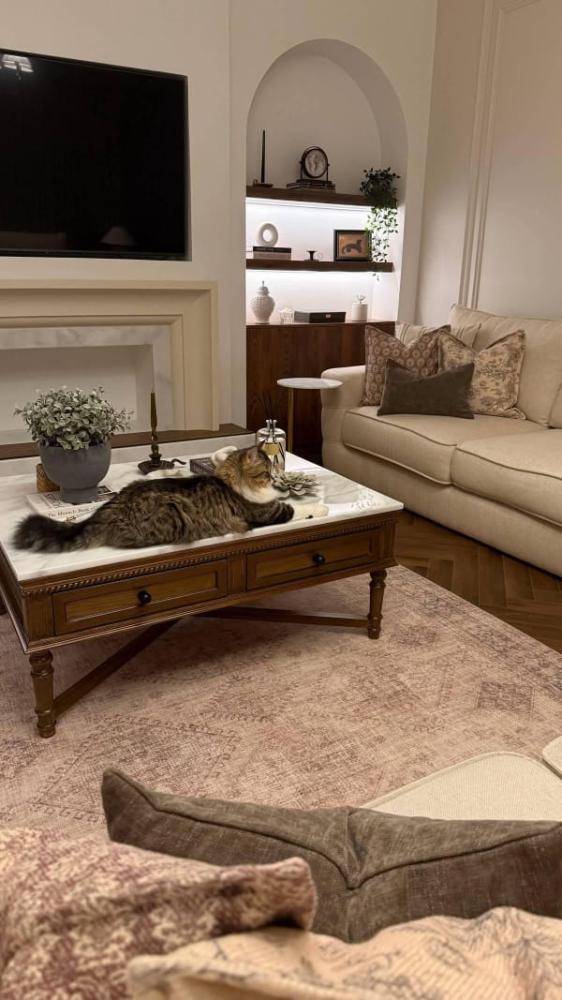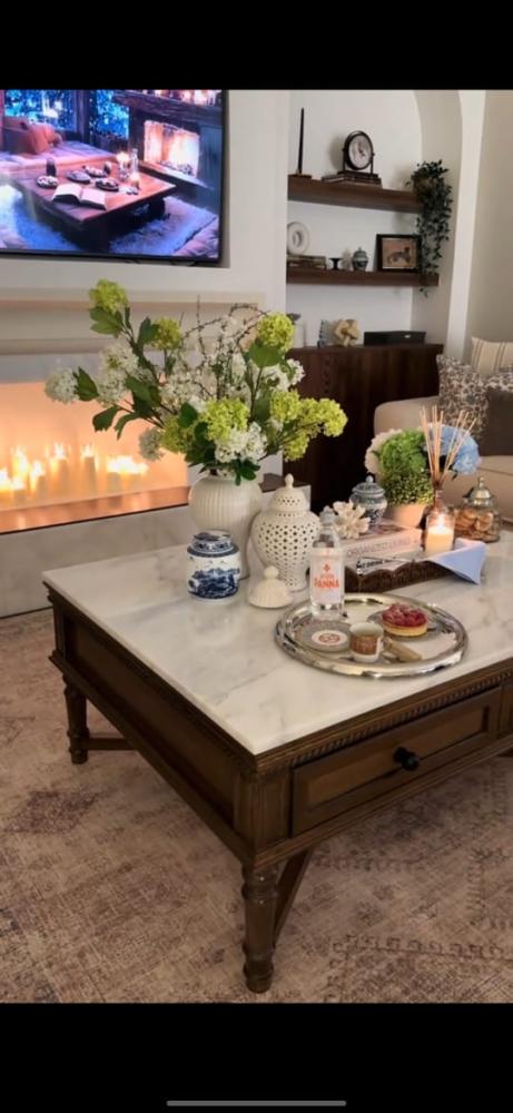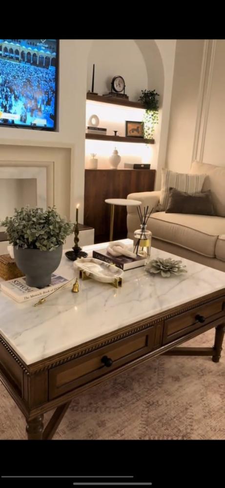 طاولة وسط خشب سنديان بسطح بديل رخام