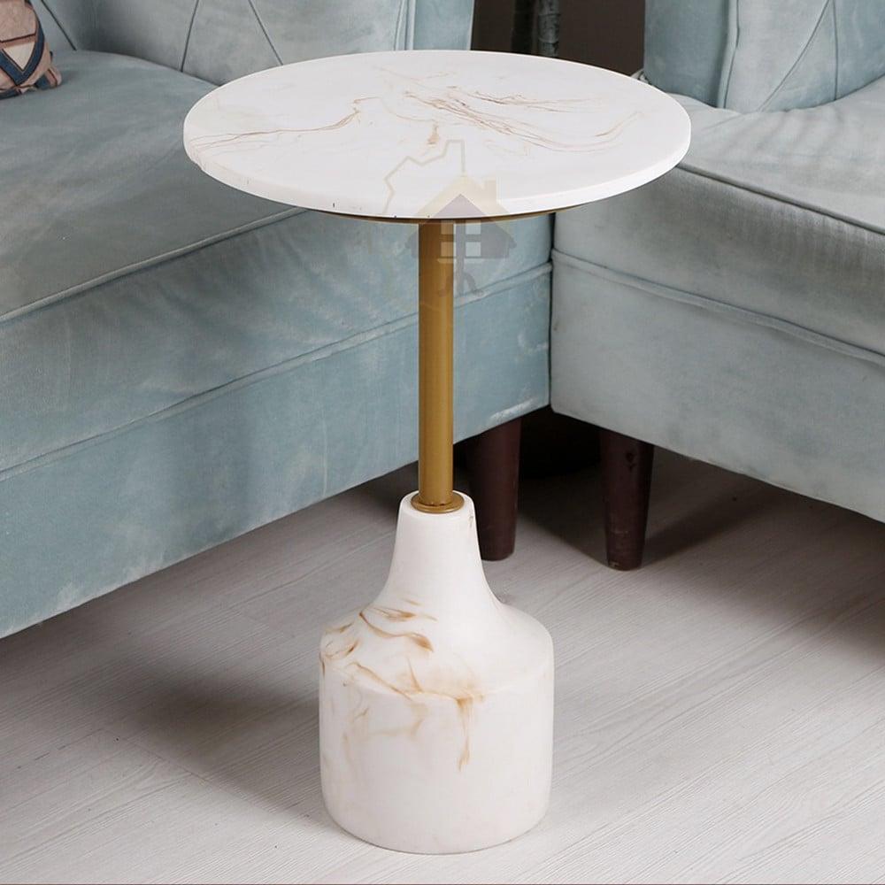 تأتي هذه الطاولة بسطح دائري مصنوع من رخام صناعي، وهو مادة تجمع بين جمال الرخام الطبيعي وعملية الصناعة. الرخام الصناعي يعطي للطاولة مظهرًا فاخرًا وجماليًا، ويتميز بتفاصيل متقنة ونمط أنيق.